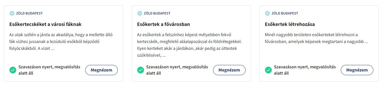 A good example of this is the community planning supported by the Municipality of Budapest, which received 81 proposals in the Green Budapest category for the 2023/2024 round, of which 25 were voted on by Budapest residents after the professional recommendations. The 3 winning proposals were all for rain gardens.